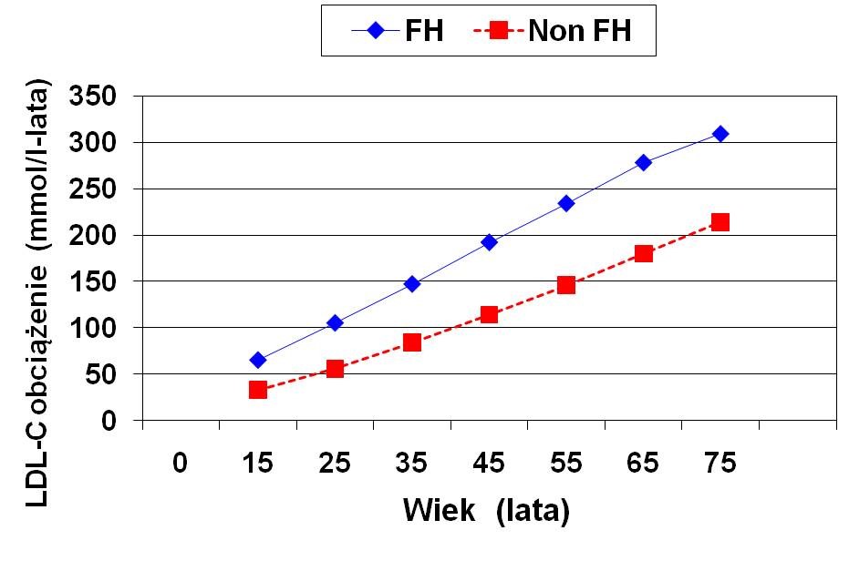 Do 45. roku życia pacjent z heterozygotyczna postacią hipercholesterolemii rodzinnej doznaje ekspozycji na LDL cholesterol podobnej jak 70-latek bez hipercholesterolemii.