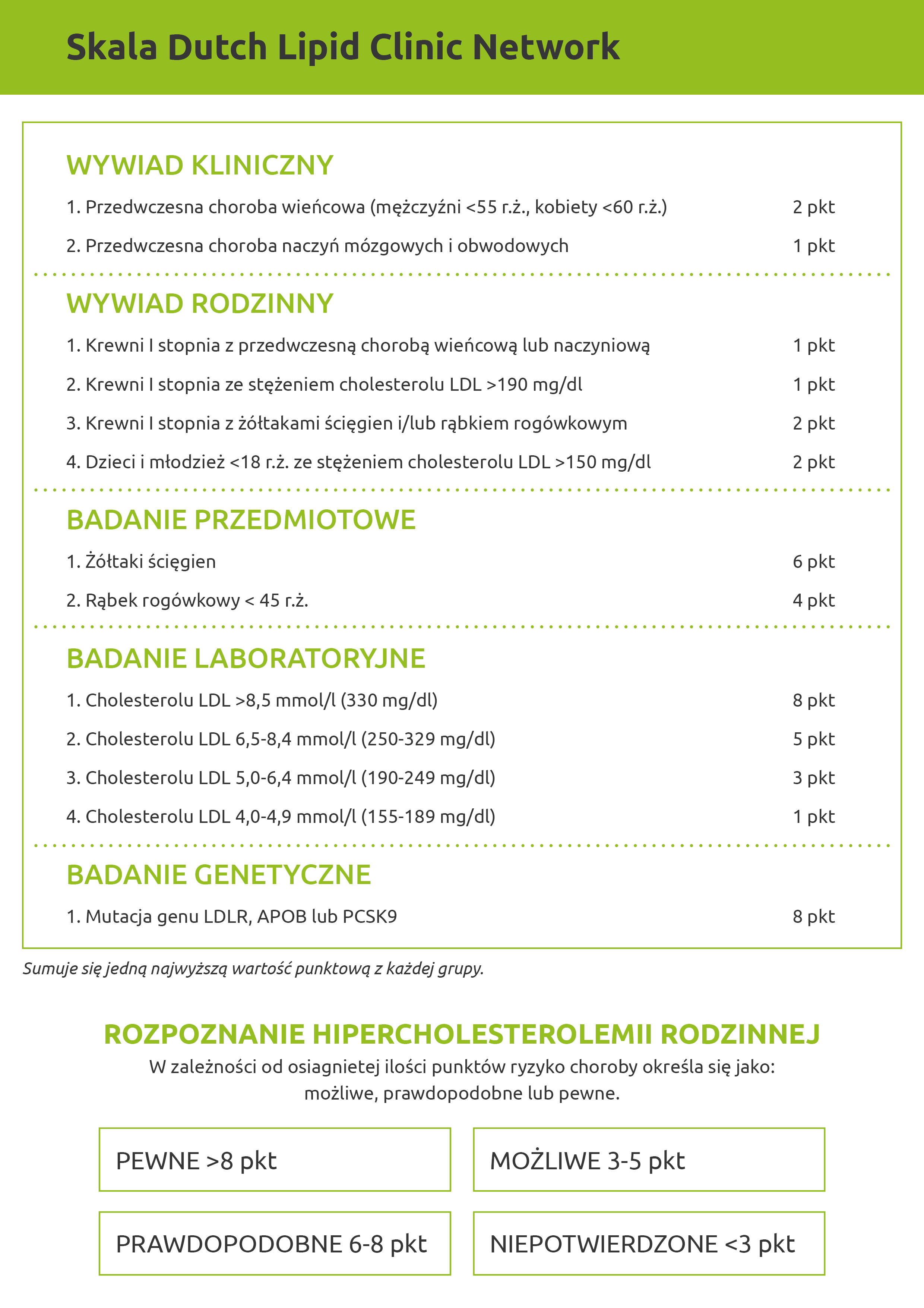 2) pewna diagnoza rodzinnej heterozygotycznej hipercholesterolemii, tj. > 8 punktów w skali Dutch Lipid Clinic Network;